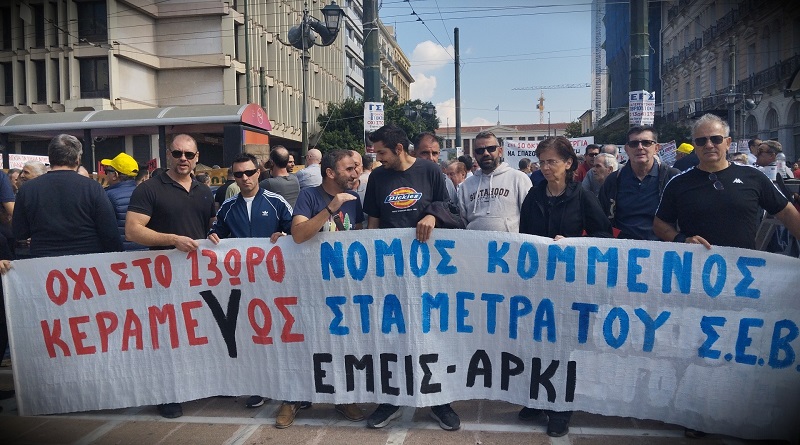 ΣΗΜΕΙΩΣΗ: Αν και δεν είναι της παρούσης γιατί αυτή τη στιγμή προέχει η συσπείρωση και η συμμετοχή στον αγώνα οφείλουμε να κάνουμε απολύτως ξεκάθαρη τη θέση μας ότι είναι τεράστιο λάθος της πλειοψηφίας της ΓΣΕΕ ότι δεν συνέχισε η ίδια τον αγώνα προκηρύσσοντας νέα Πανελλαδική γενική απεργία.